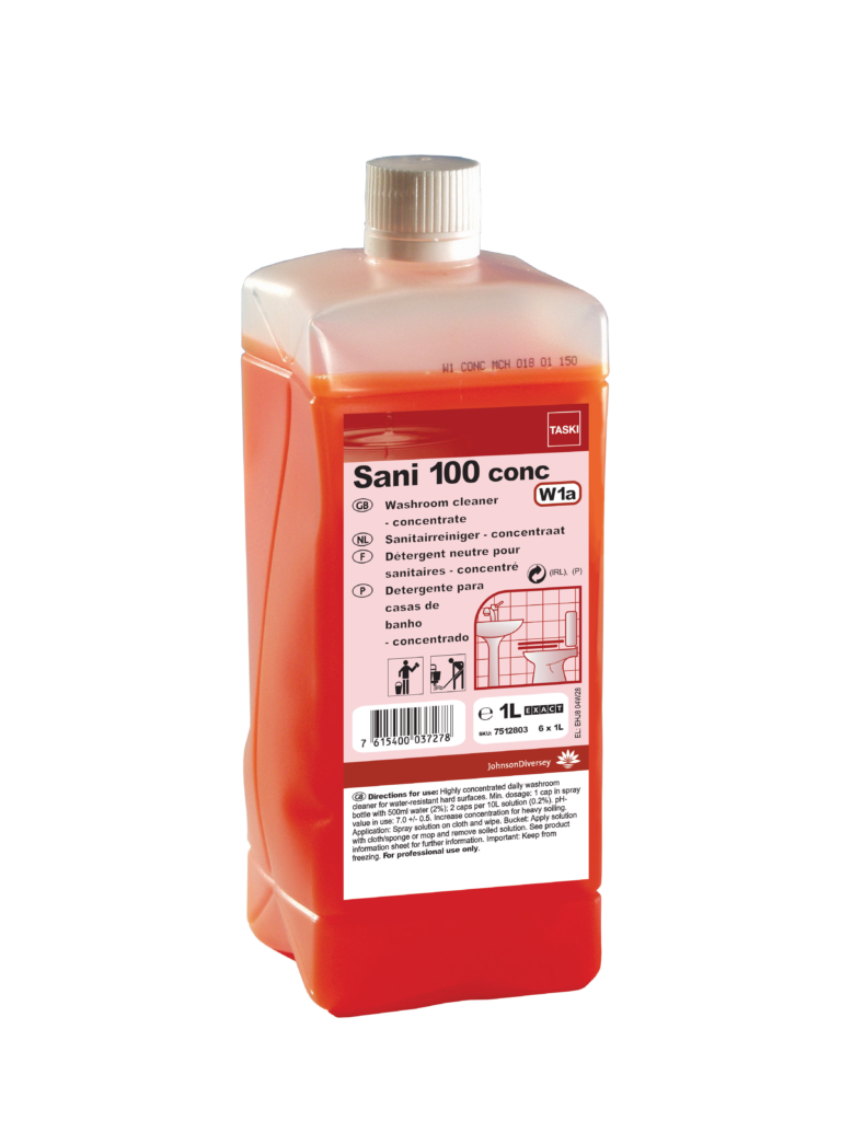 TASKI Sani 100 Conc W1a 6 x 1 liter - Sanitairreiniger | PureHygiene.nl