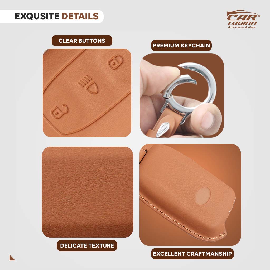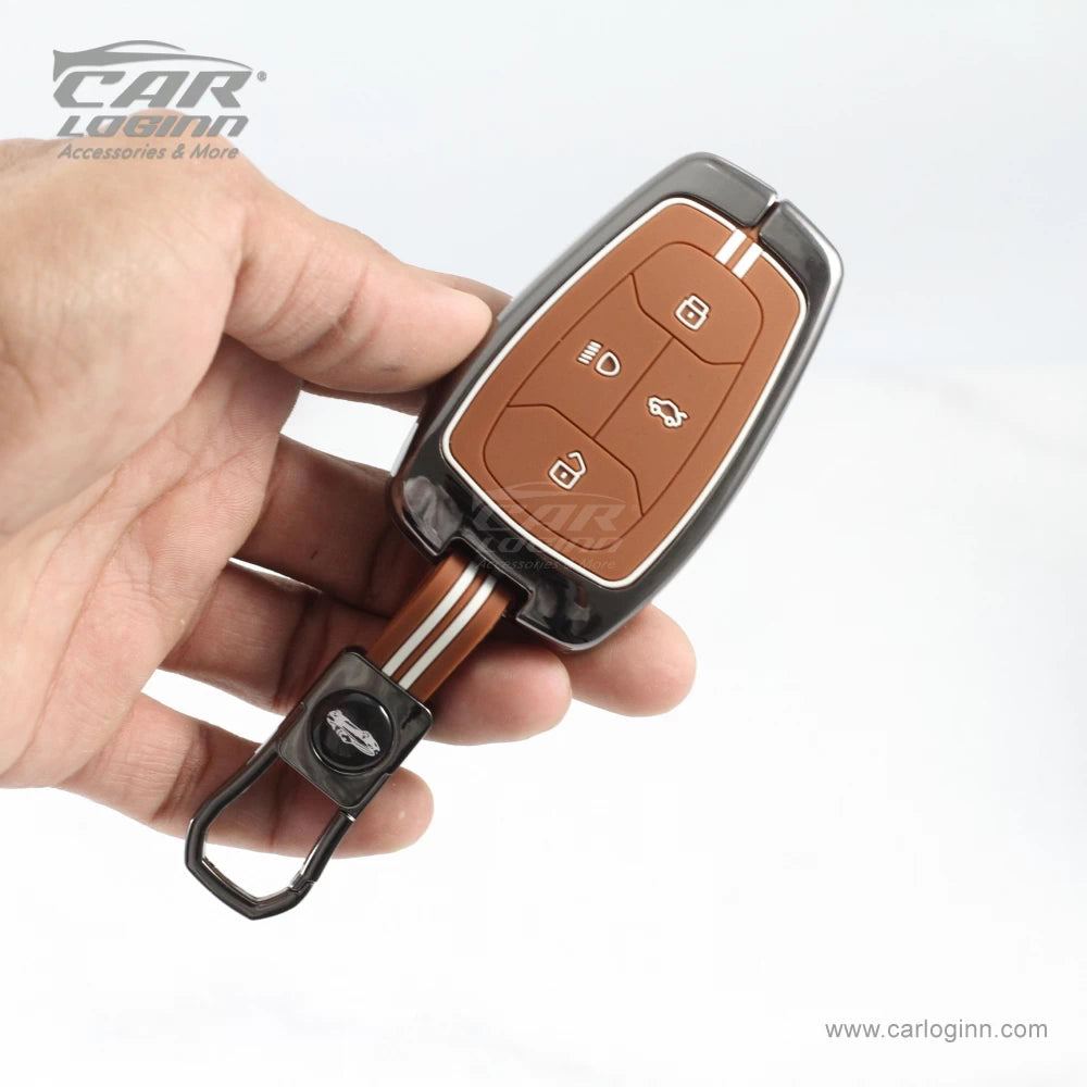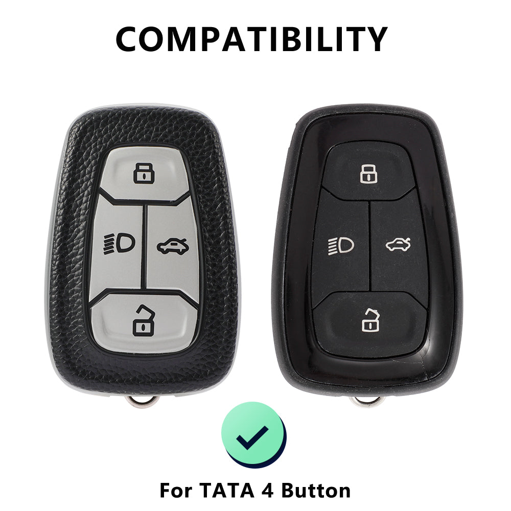 Carloginn®️ Metal Alloy Leather Key case for TATA 4 Button Smart Key ...