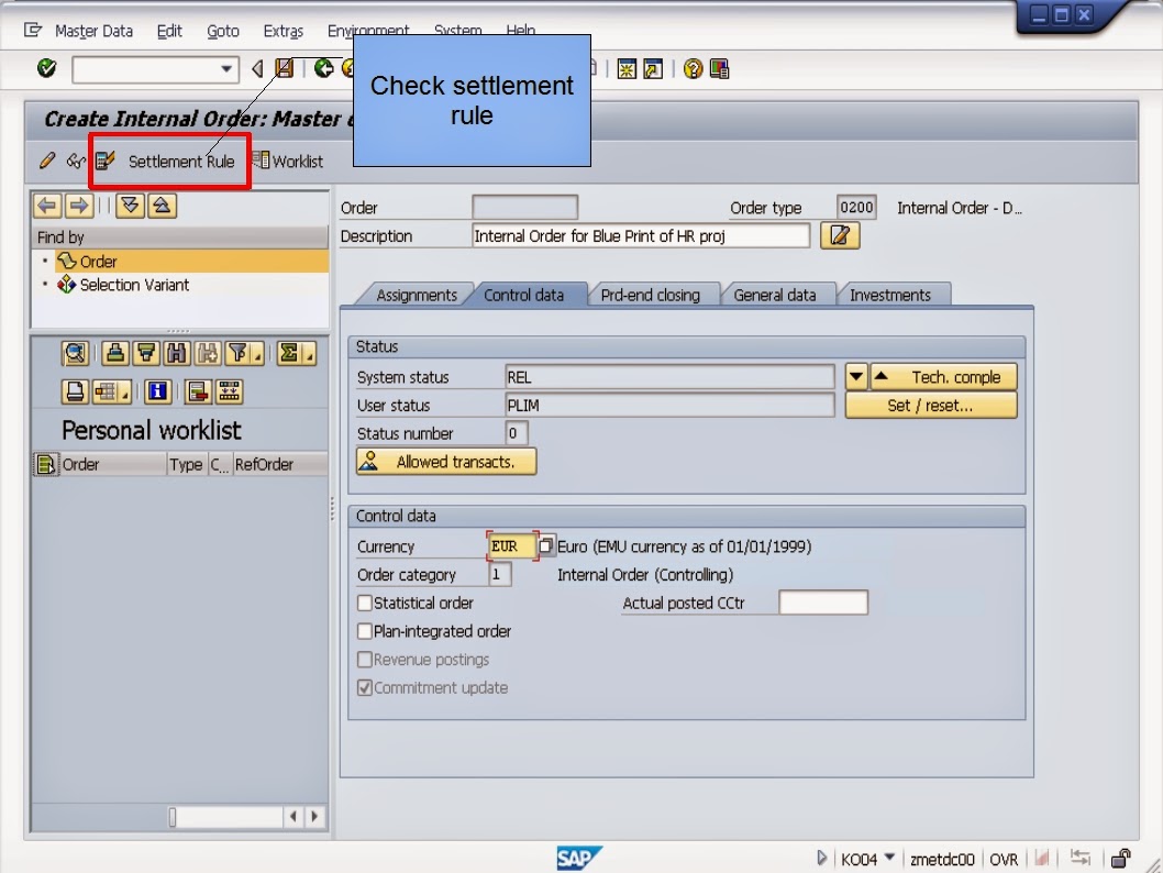 SAP CO Master Data: Internal Orders KO04 KO01 KO02 KO03 внутренний ...