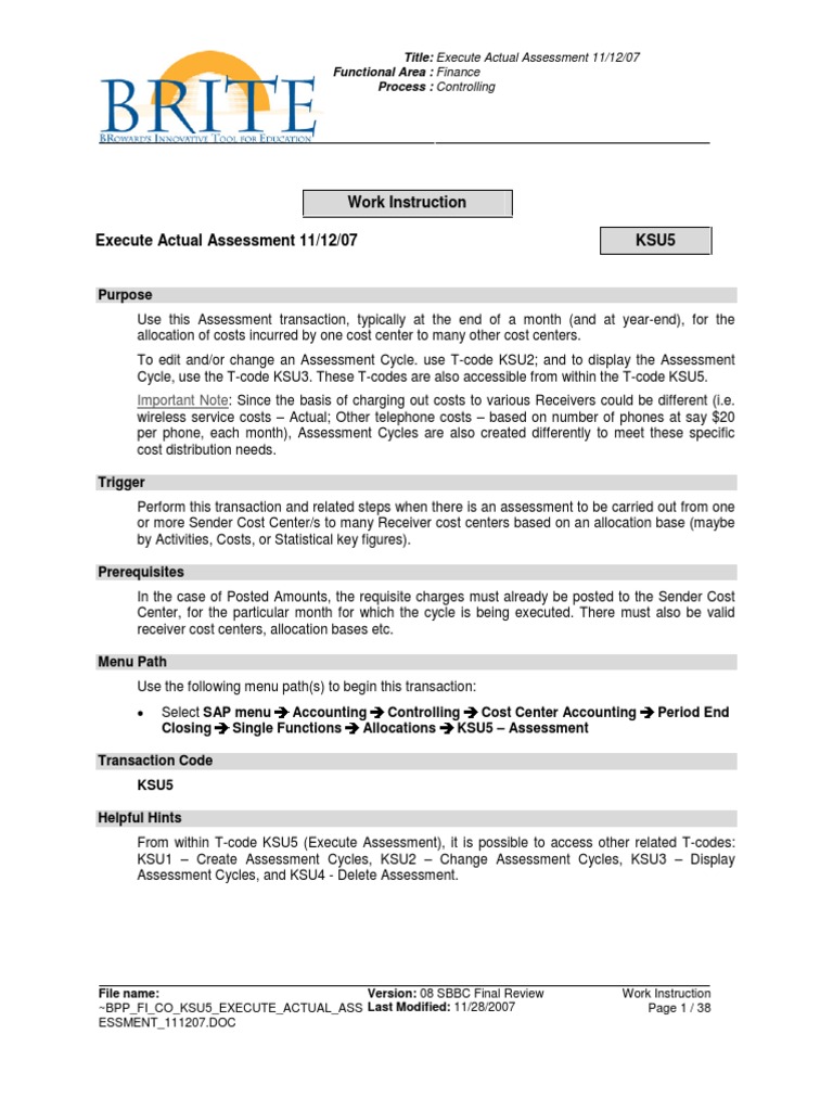 SAP KSU5 Assessment Allocation | PDF | Icon (Computing) | C ...