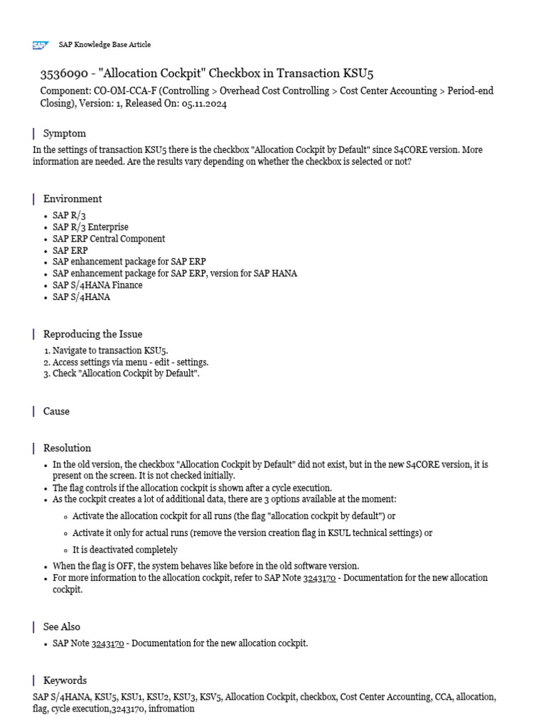 KSU5 Allocation Cockpit Checkbox Explained | PDF