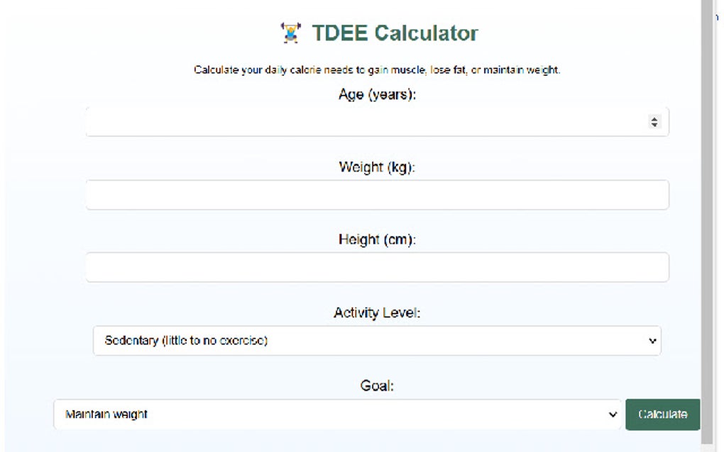 TDEE Calculator for Weight Loss | My Personal Trainer Malta Tools