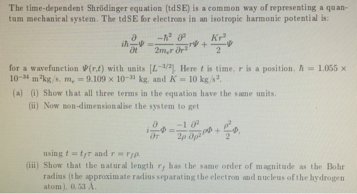 Solved a ] The time-dependent Schrodinger equation (TDSE) | Chegg.com