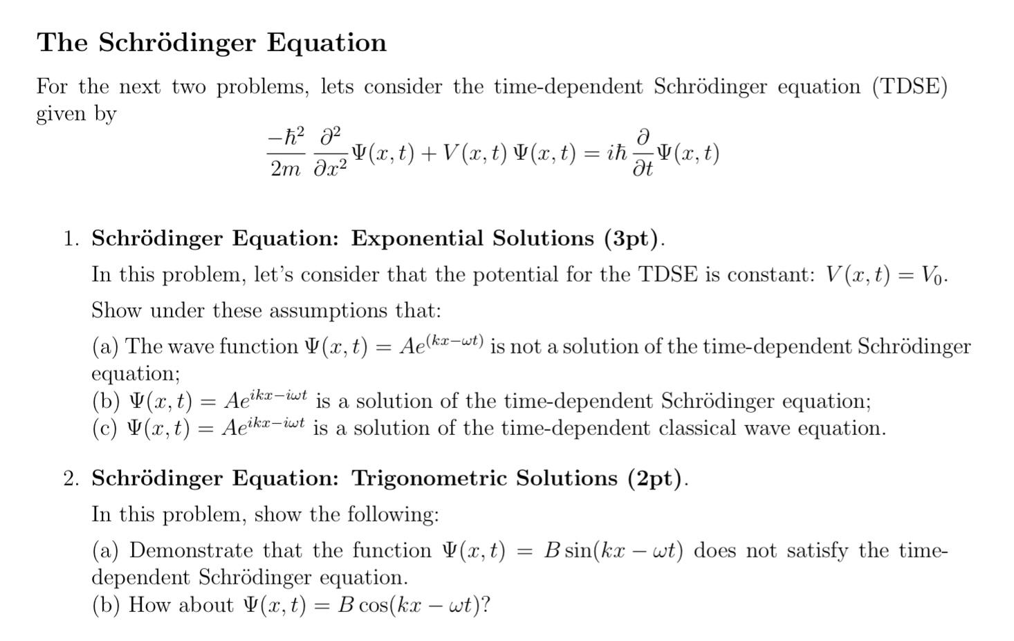 Solved Question 1Solution to the TDSE and TISE is: | Chegg.com