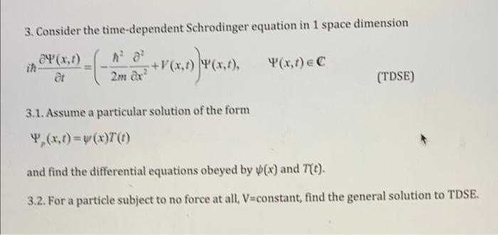 Solved 3. Consider the time-dependent Schrodinger equation | Chegg.com