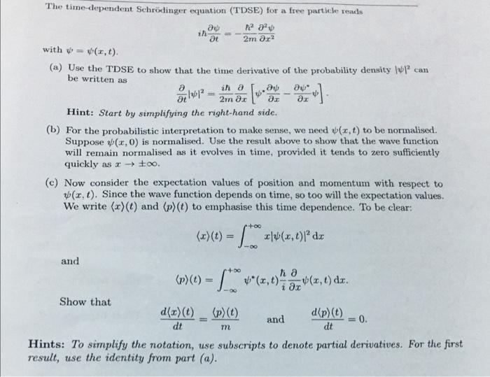 Solved Starting from the Time-Dependent Schrodinger Equation | Chegg.com