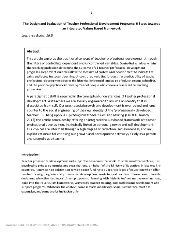 (PDF) The Design and Evaluation of Teacher Professional Development ...