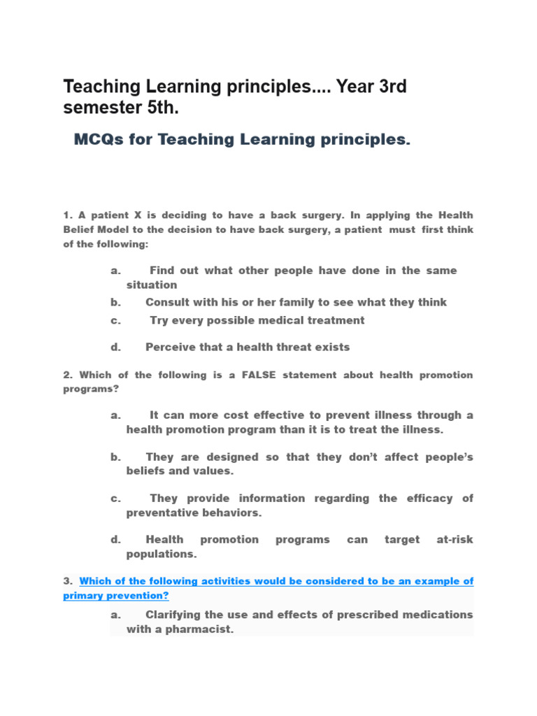 PRINCIPLES OF TEACHING AND LEARNING - Nurses Revision