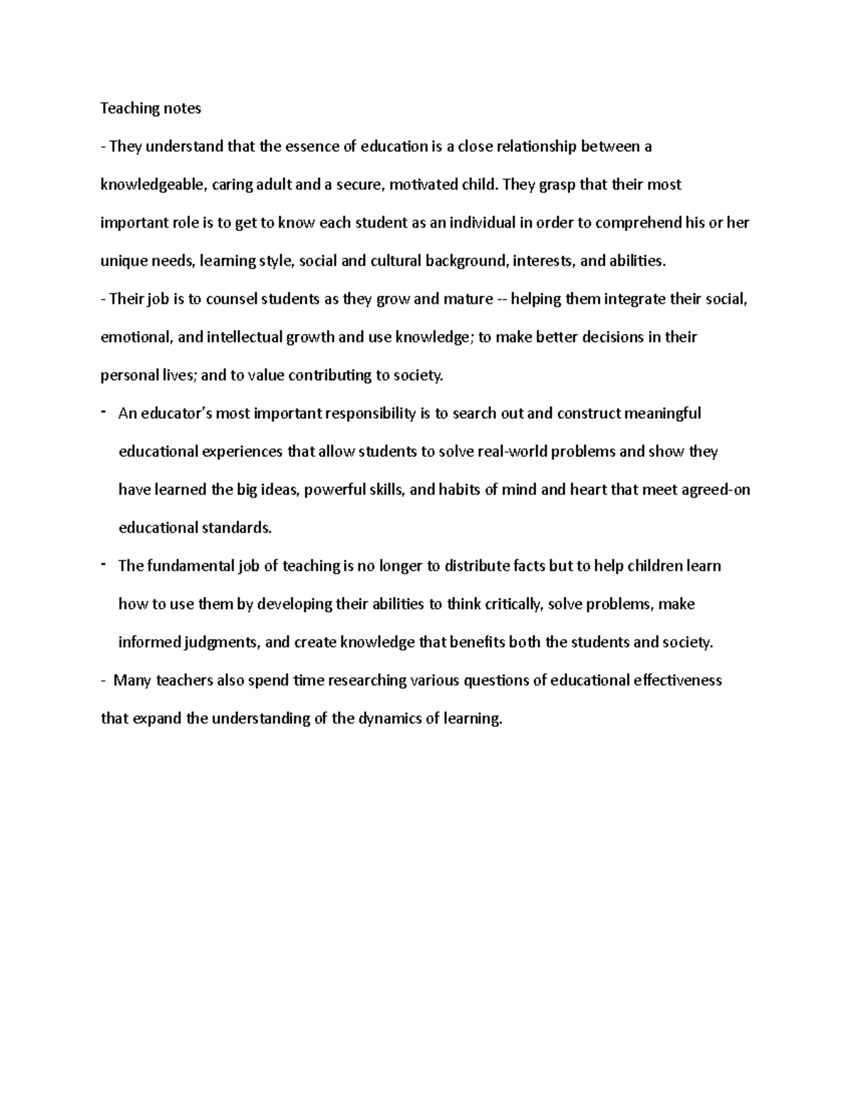 Teaching as a Profession - Teaching notes They understand that the ...