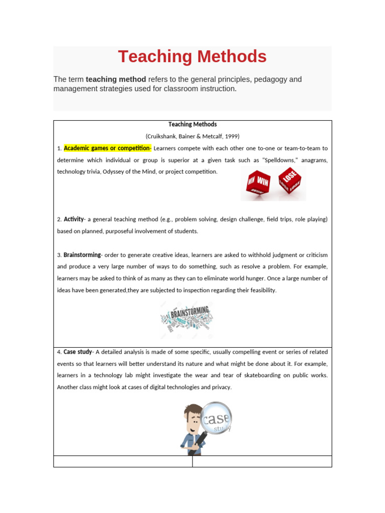 Teaching Methods Chart at Rose Ream blog