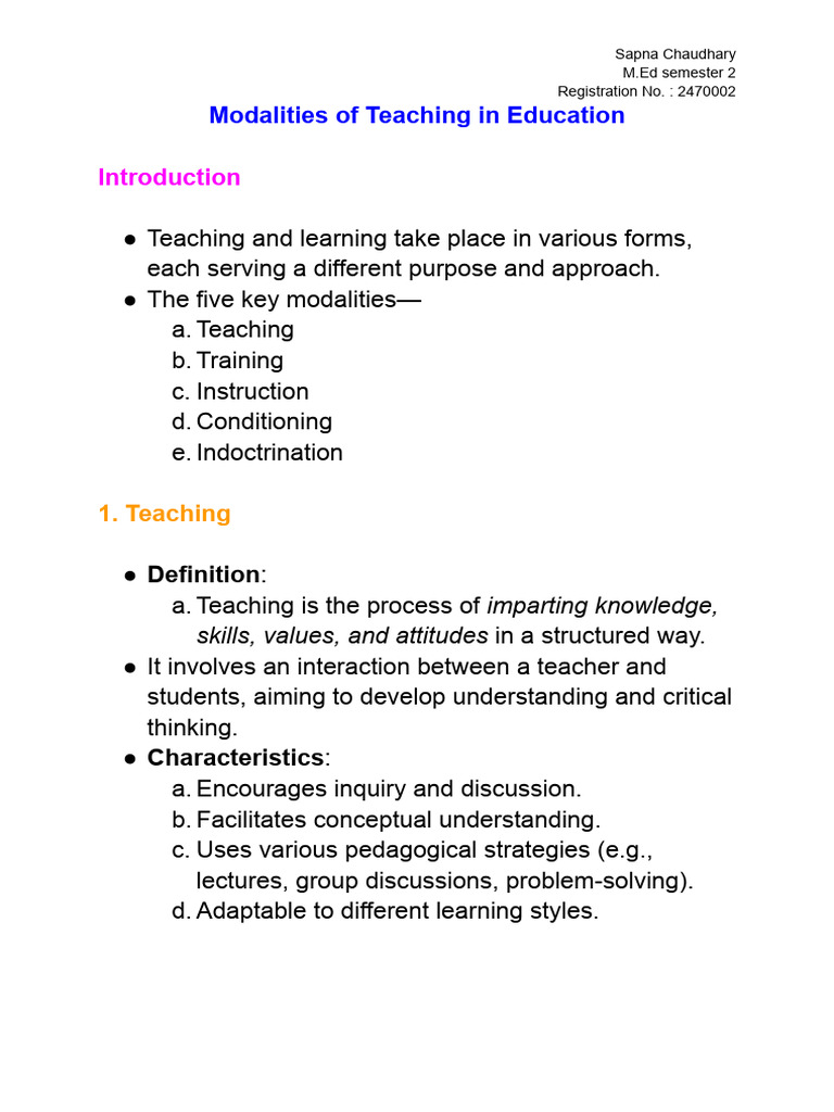 Teaching Modalities and Strategies Overview | PDF | Learning | Teachers
