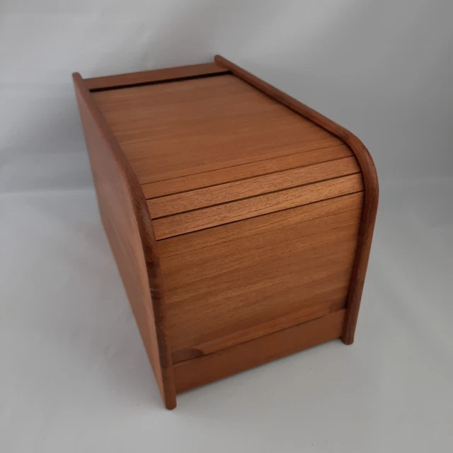 VINTAGE MCM TEAK-TECH Wood Tambour Roll Top Storage Organizer 7”x 7.5 x ...