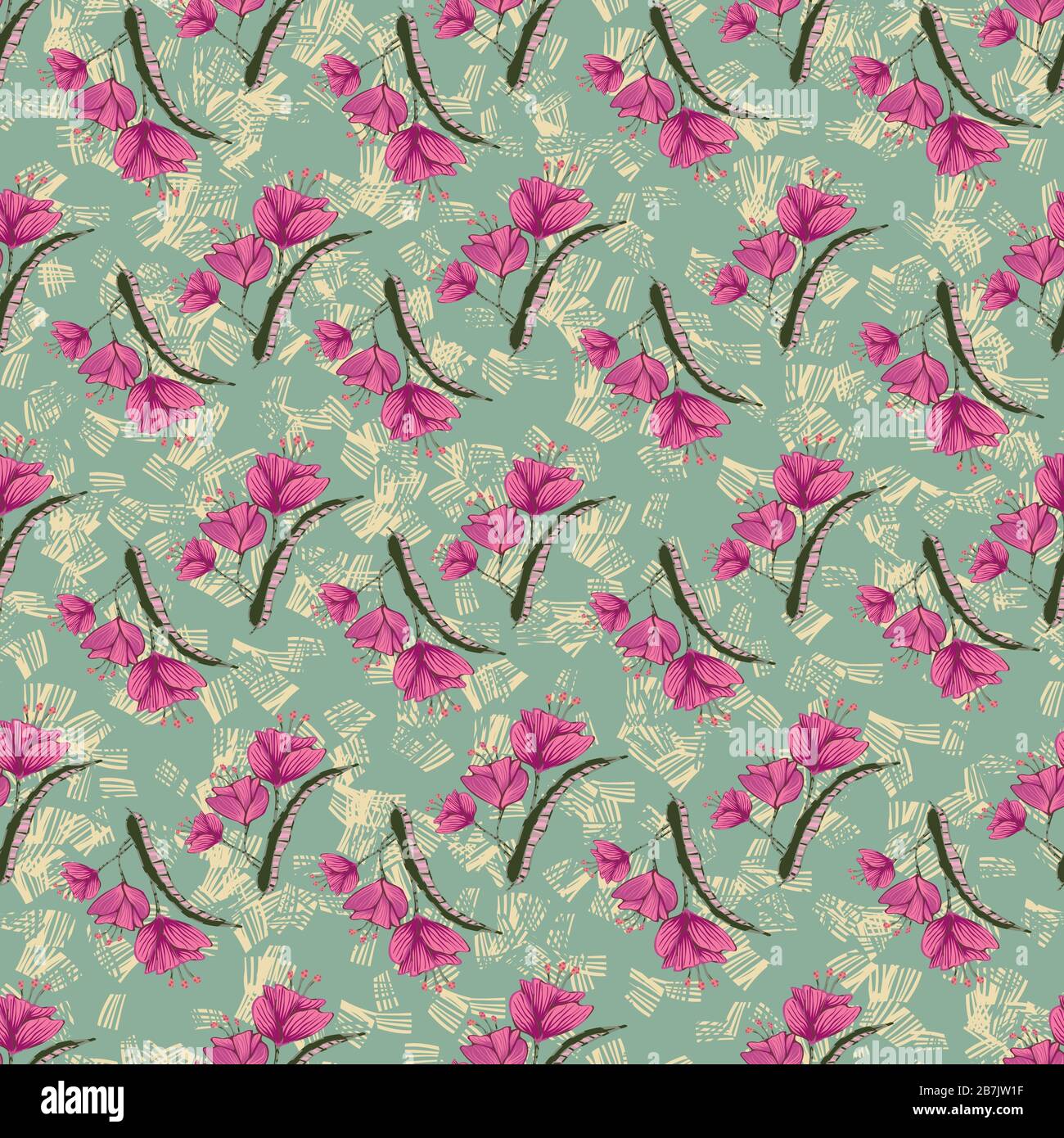 Teal Bold Trailing Ditsy Floral Pattern by Katerina Gri Seamless Repeat ...