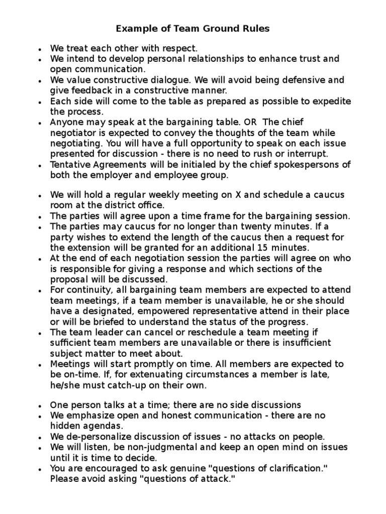 Example of Team Groundrules | PDF | Bargaining | Negotiation