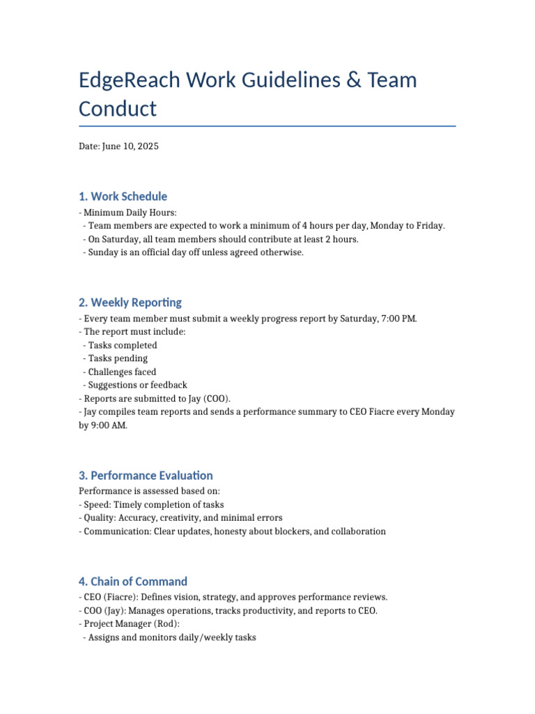 EdgeReach Work Guidelines and Team Conduct | PDF