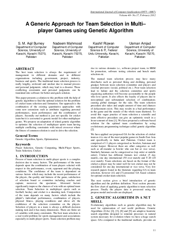 (PDF) A Generic Approach for Team Selection in Multi– player Games ...