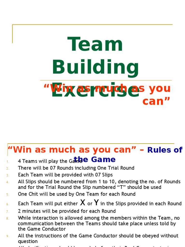 Team Building Exercise: Win to Learn | PDF | Intuition | Evaluation