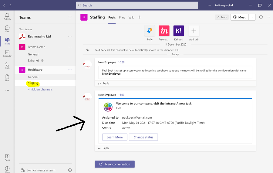 Post Messages in Microsoft Teams channel using Webhooks