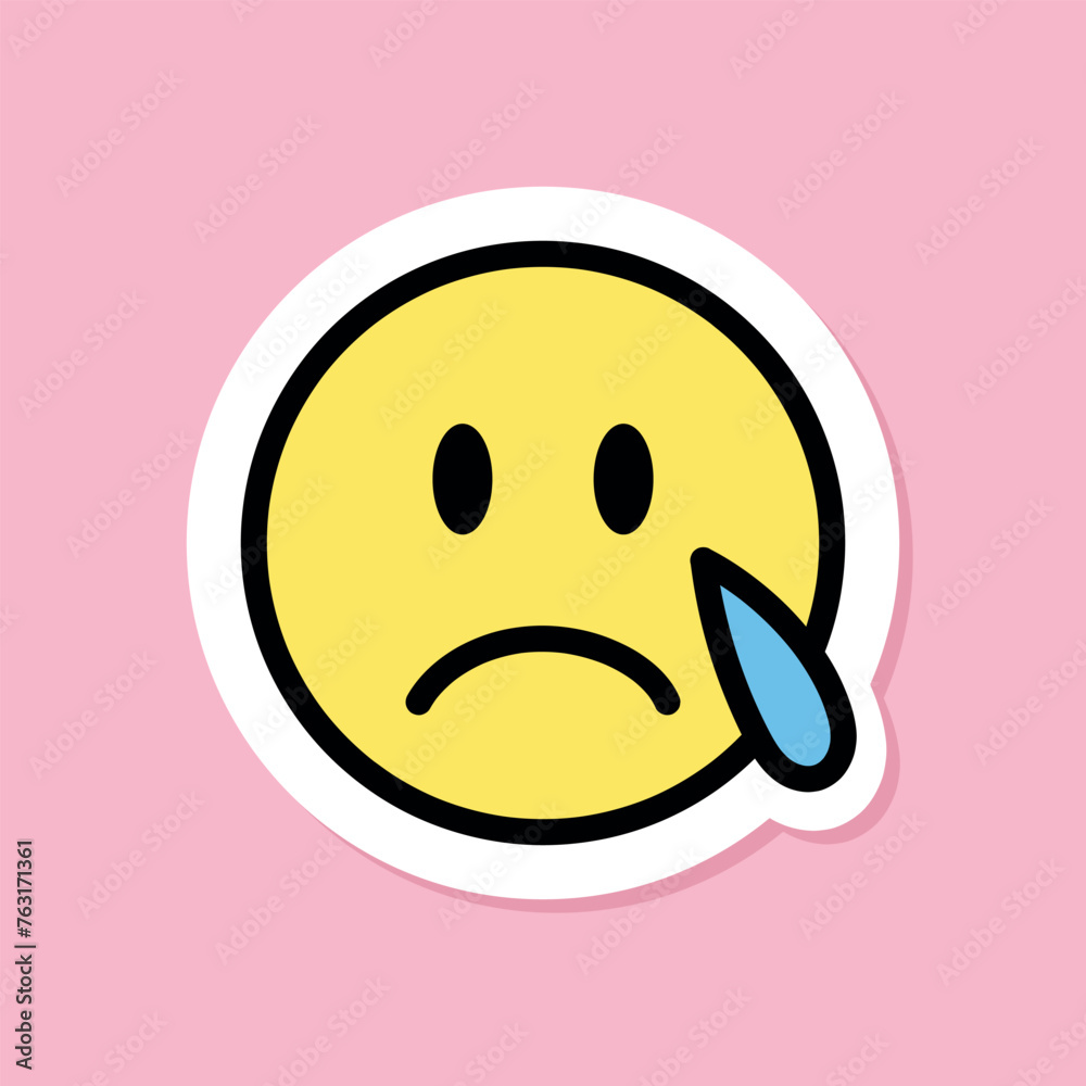 Premium Vector | Crying face emoji sticker yellow face with tear black ...