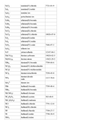 Tellurium tetrabromide Tellurium tetraiodide Tellurium tetrachloride ...