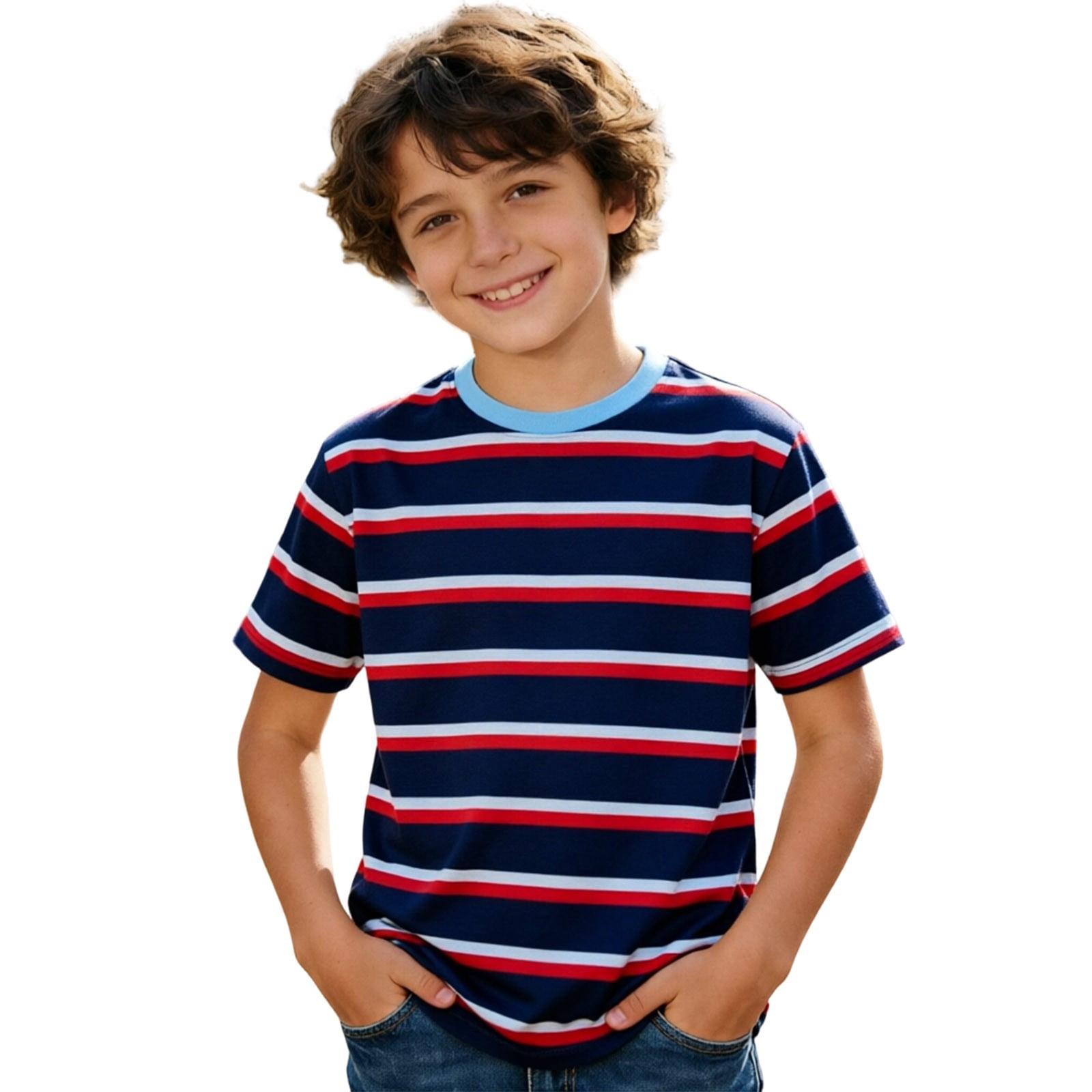 Boys Striped Short Sleeve T-Shirts Casual Crewneck Drop Shoulder Summer ...