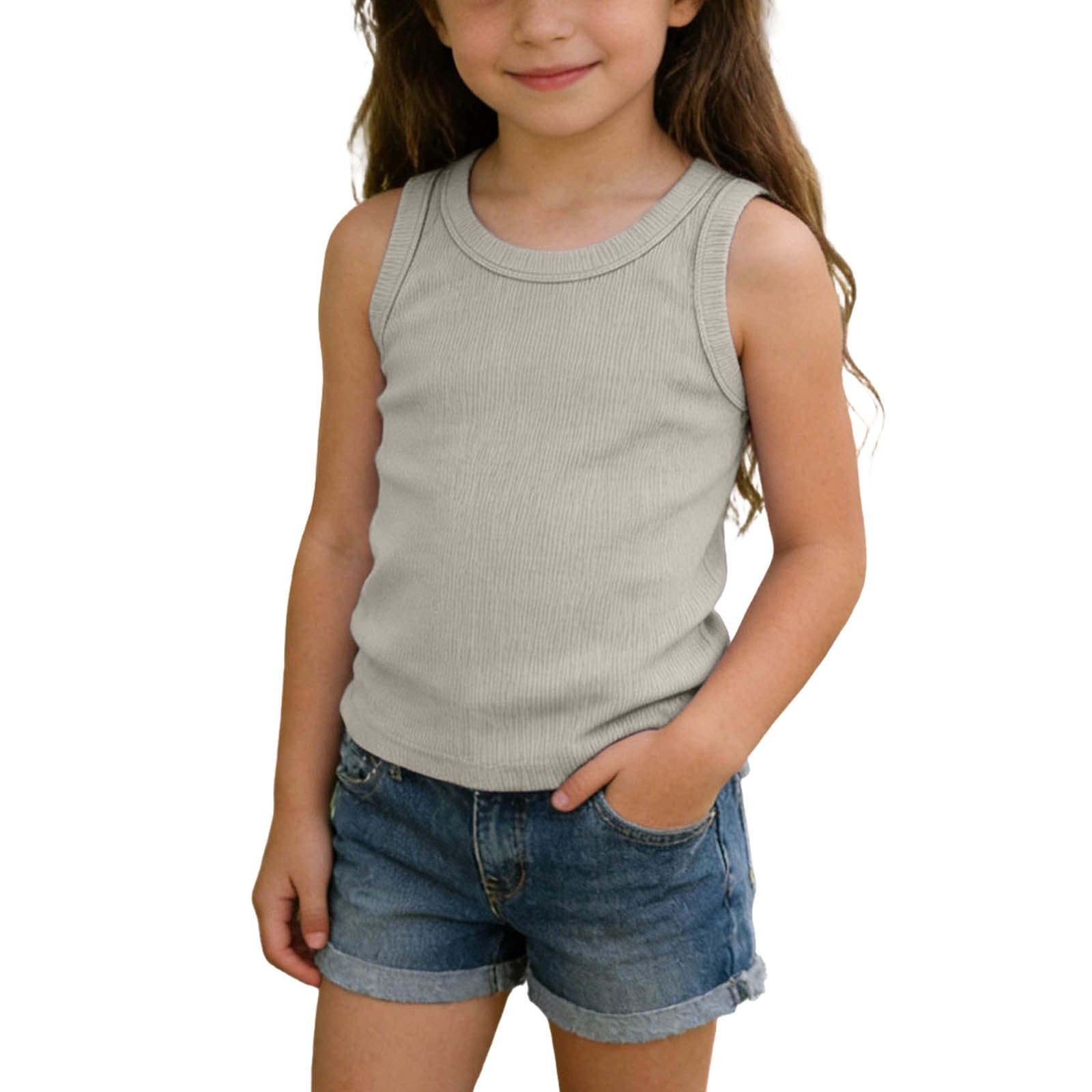 CHEEREAM Girls Summer Tank Tops Sleeveless Shirts Crew Neck Basic Tees ...