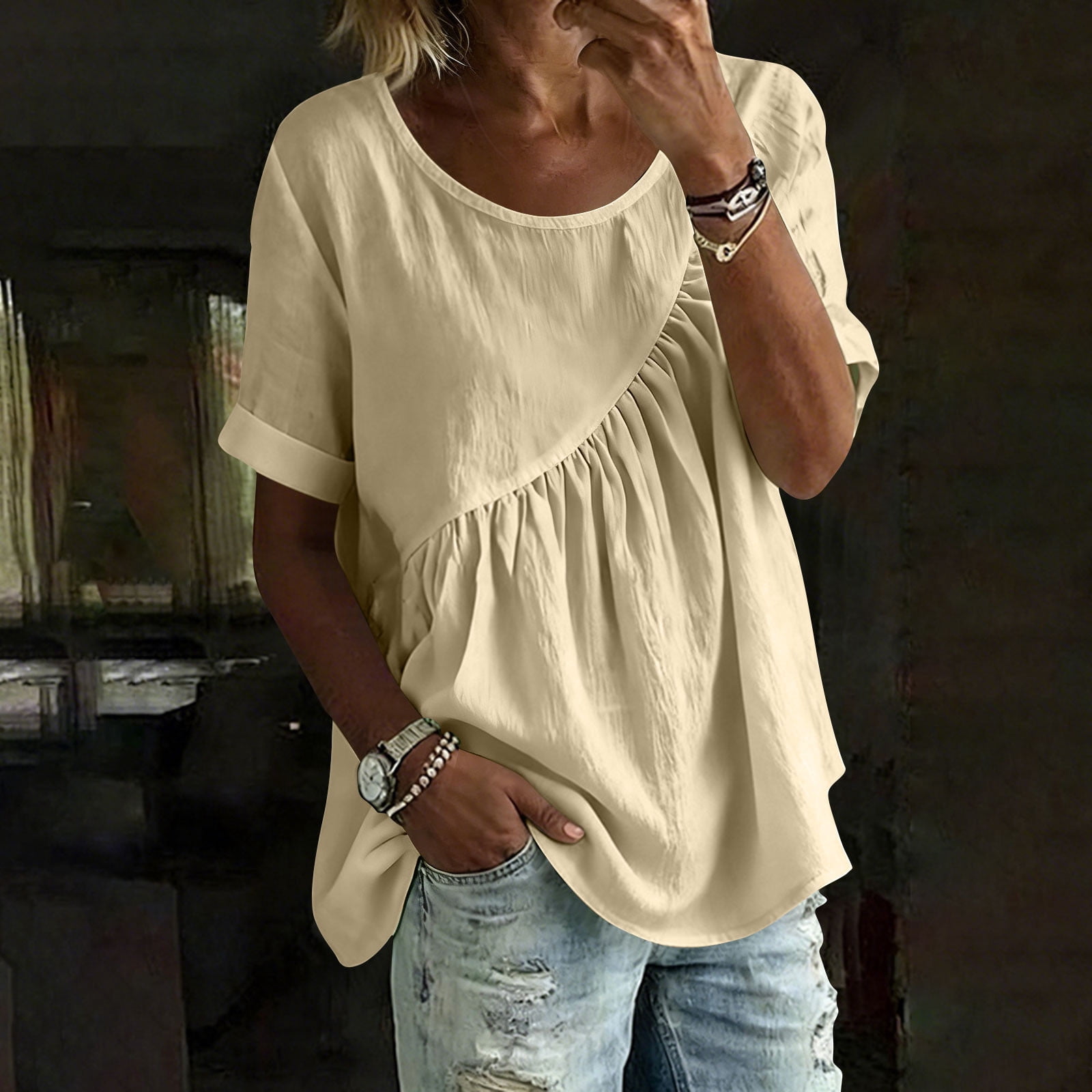 snilers Womens Summer Babydoll Tops Casual Loose Fit Rolled Short ...