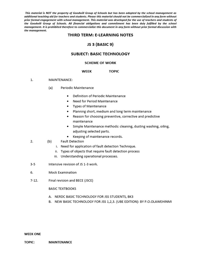 JSS3 Basic Technology Scheme of Work-PDF|1st, 2nd & 3rd Term | - SyllabusNG