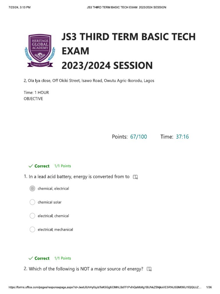 Basic Tech 2023 Third Term Exams | PDF | Voltage | Electrical Network