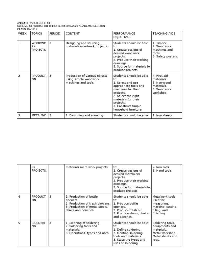 Basic Technology Third Term Scheme Basic 9 New | PDF | Metalworking ...