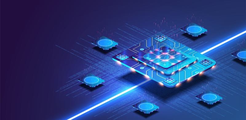Hight semiconductor technology chip on integrated circuit board, line ...