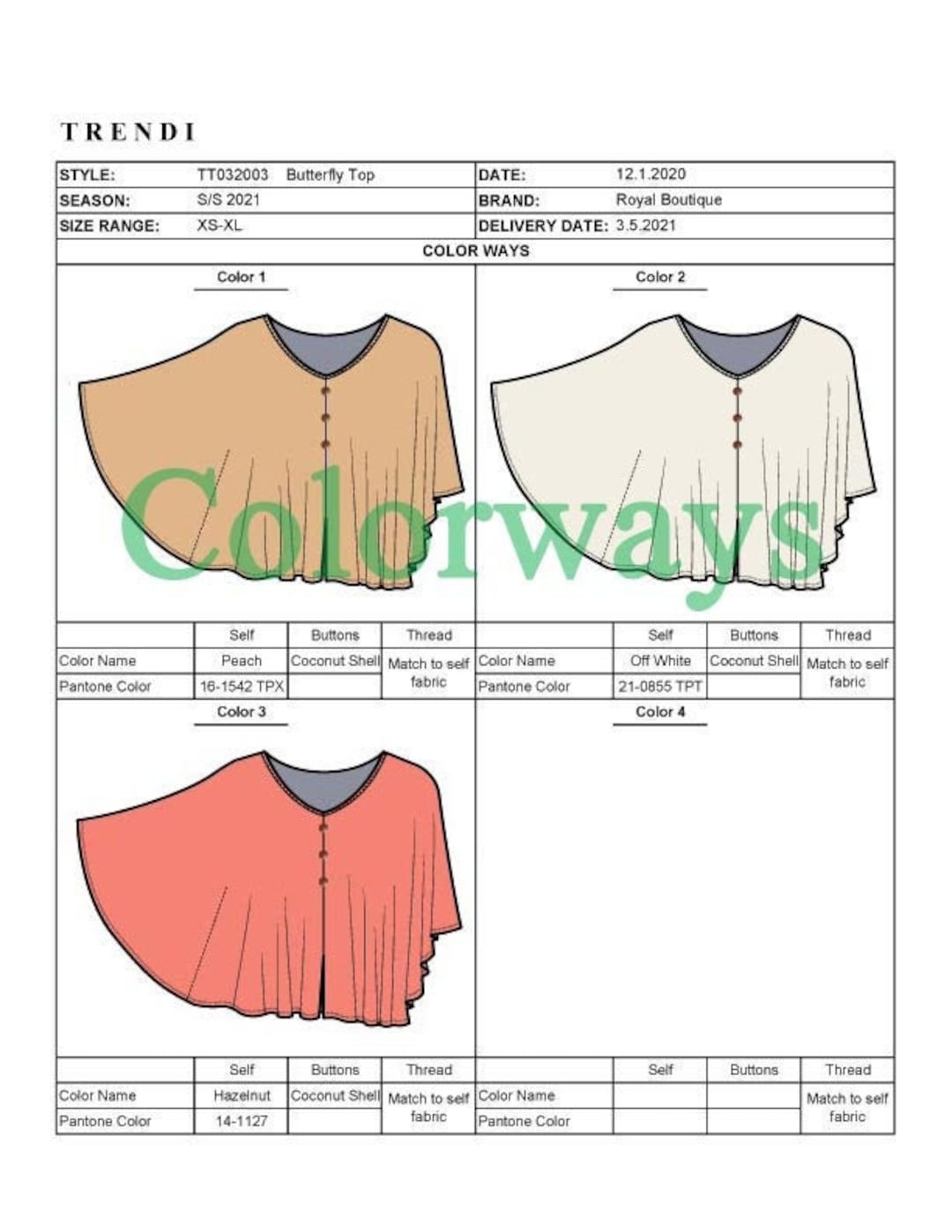 Color Ways Template for Tech Pack Garment Production for Clothing ...