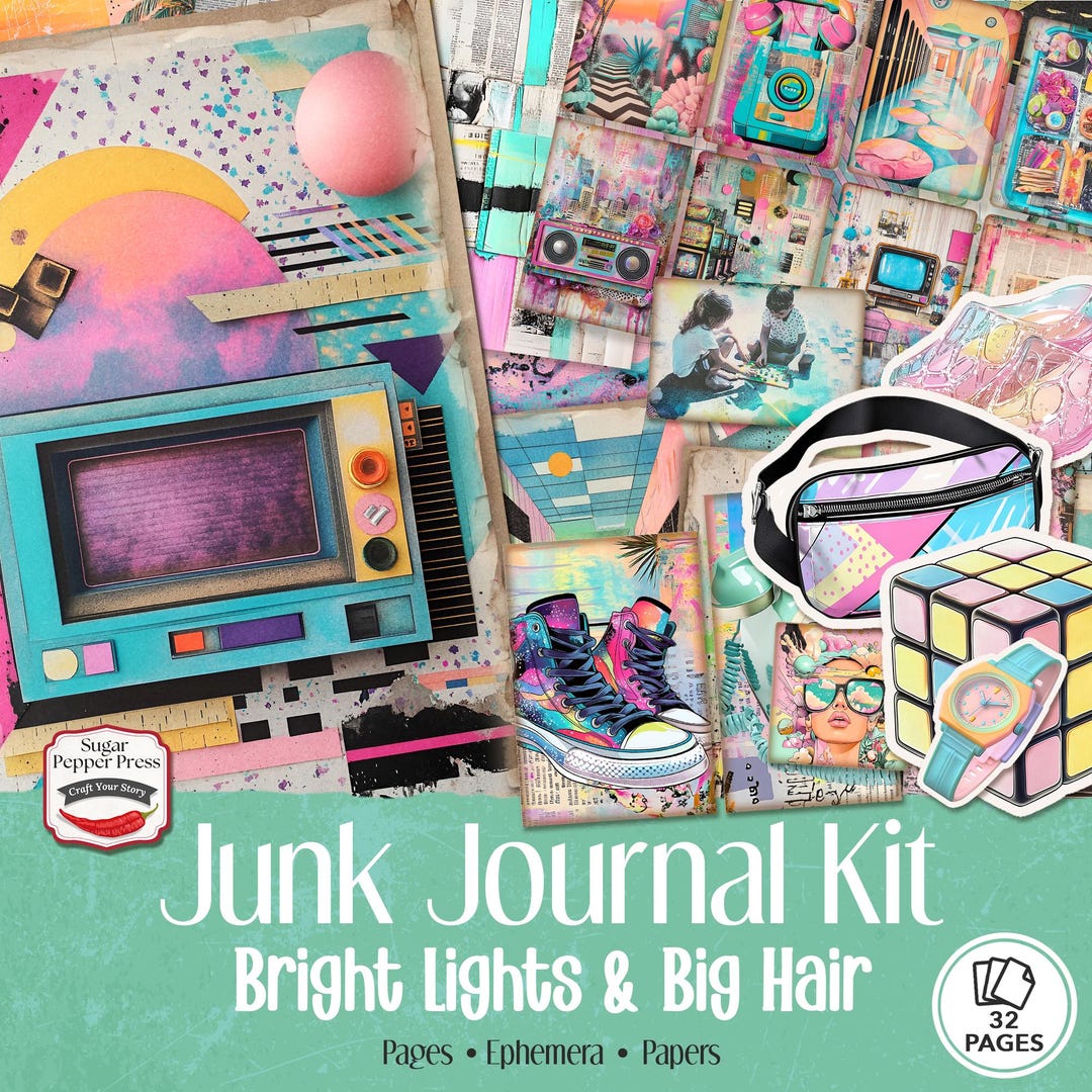 Bright Lights & Big Hair Junk Journal Kit | Printable 80s Retro ...