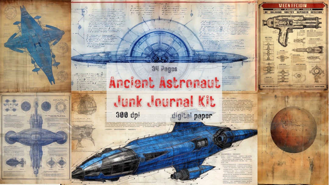 Ancient Astronaut Technical Junk Journal Kit, 34 Vintage Alien ...