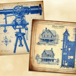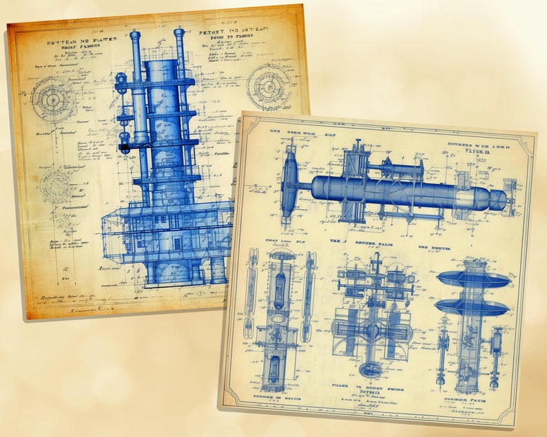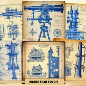 Digital Paper Technical Blueprints | Vintage Blueprint Junk Journal ...