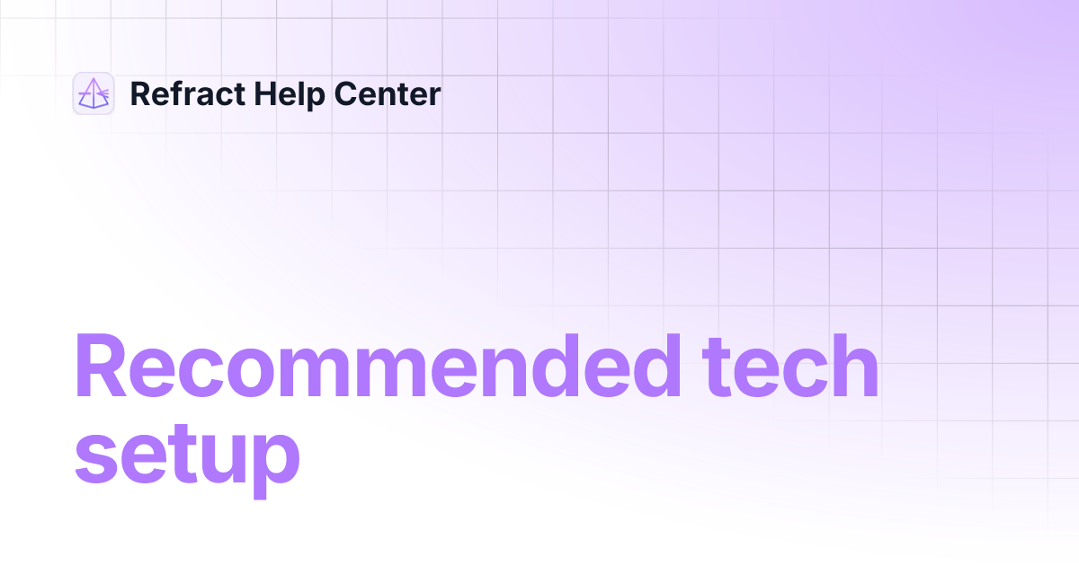 Recommended tech setup | Refract Help Center