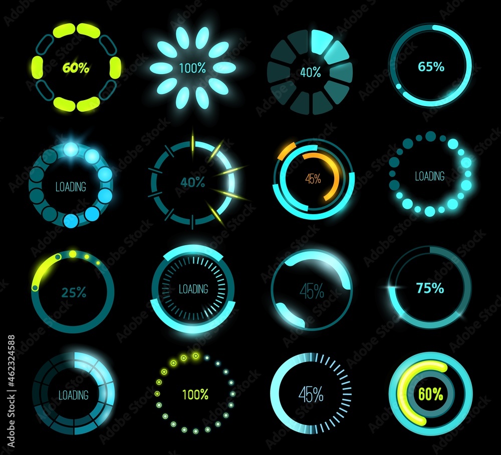 Set of HUD modern loading progress bars user interface elements design ...