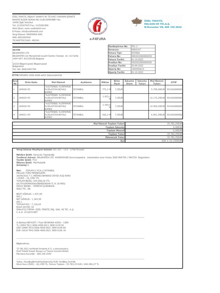 Invoice Balkantex LTD Ihr2022000000250 | PDF