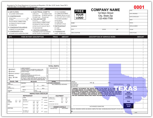 Texas HVAC Invoice Form : PrintIt4Less
