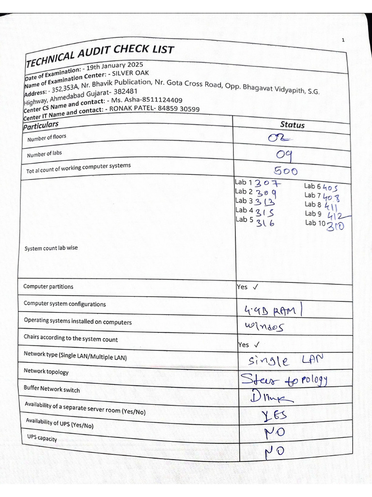 Example of A Technical Systems Audit Checklist For A Laboratory ...