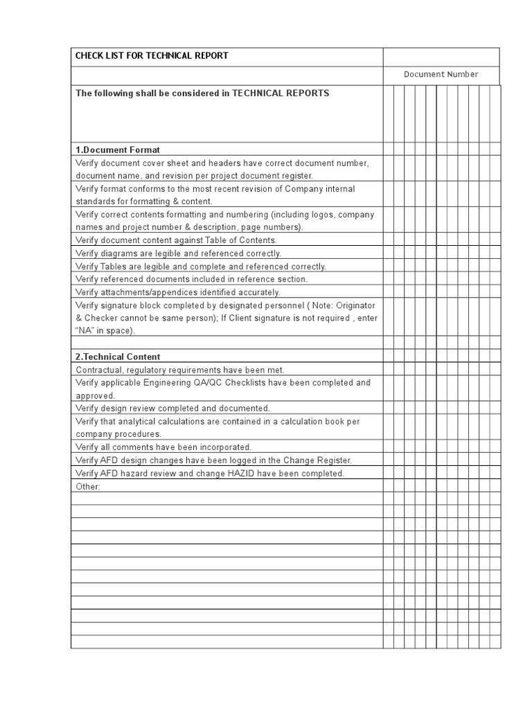 01 - Check List For Technical Report | PDF