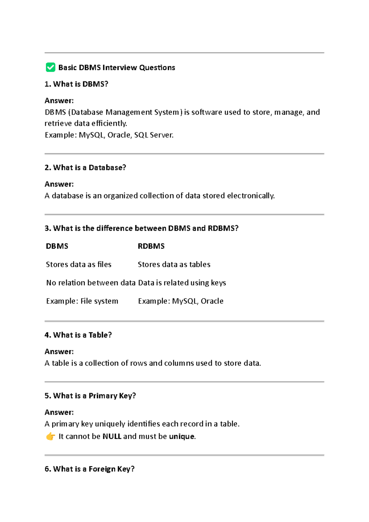 DBMS Interview Questions & Answers for Software Engineering - Studocu