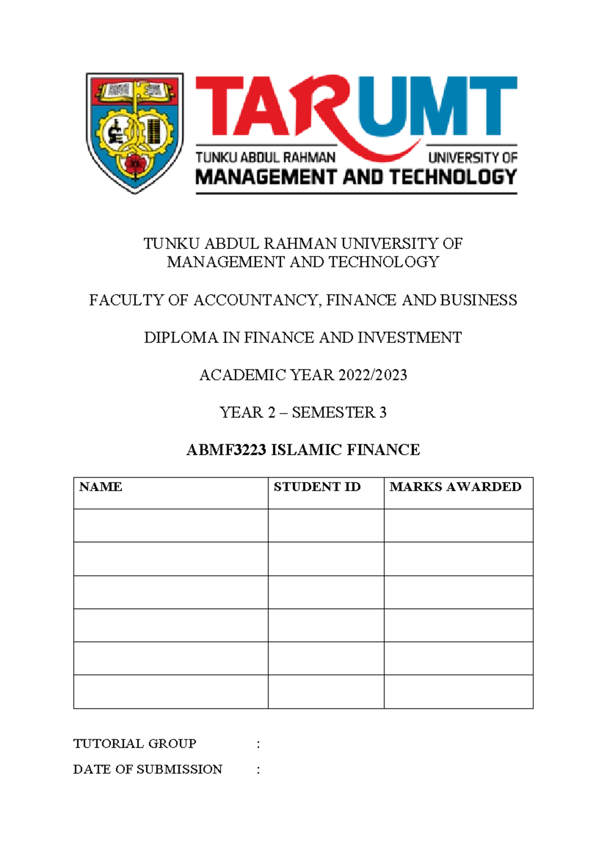 Assignment Forms ABM3223 202401 - TUNKU ABDUL RAHMAN UNIVERSITY OF ...