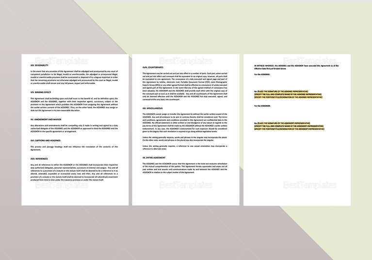 Assignment Agreement Template - Google Docs, Word, Apple Pages ...