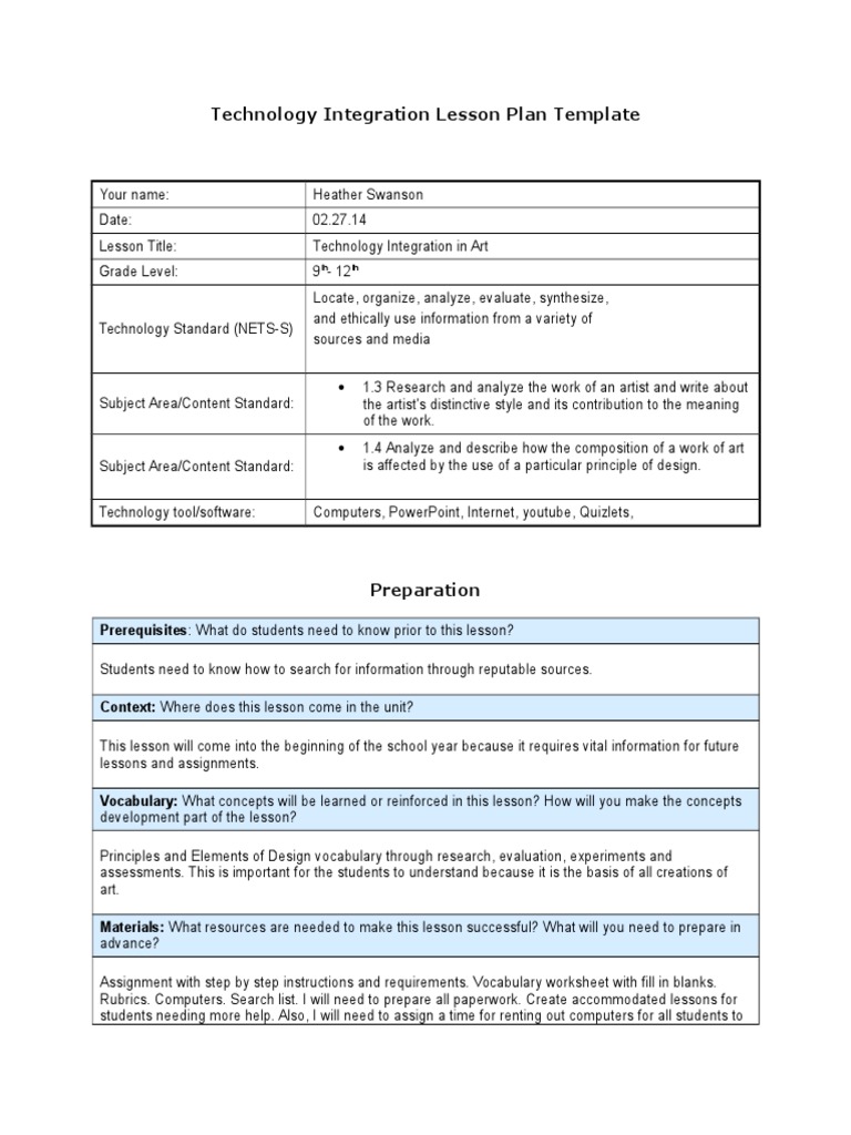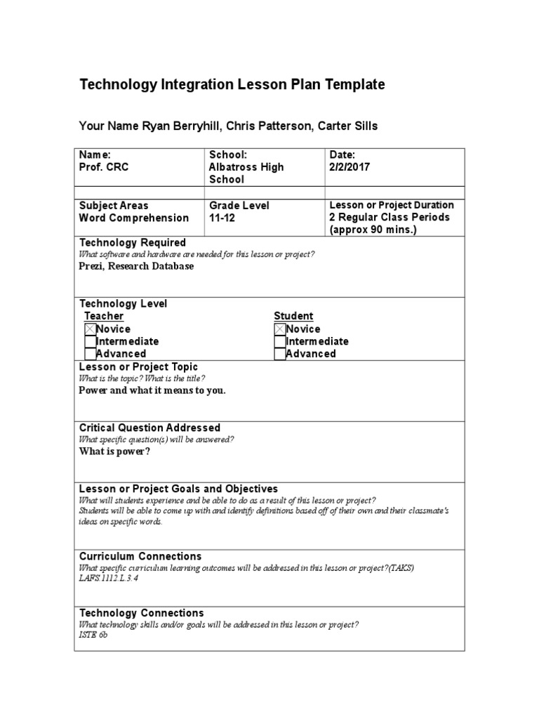 Technology Integration Lesson Plan Template Complete | PDF | Lesson ...