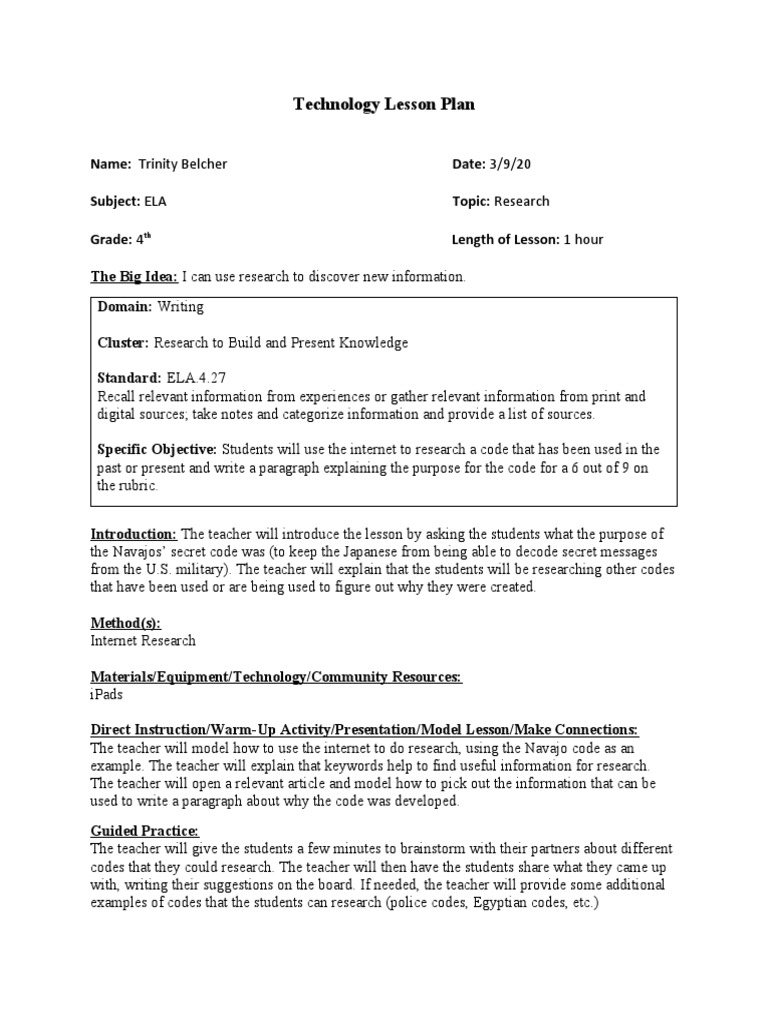 Tech Integration Lesson Plan | PDF