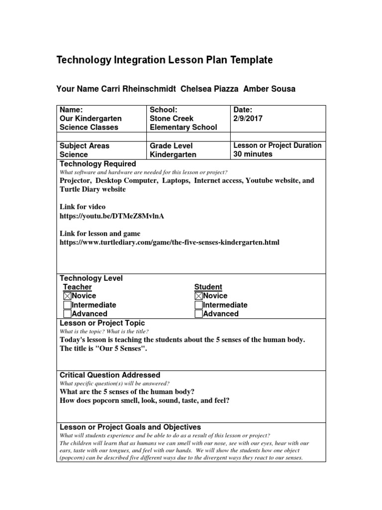 Technology Integration Lesson Plan Template-1 | PDF | Senses | Lesson Plan