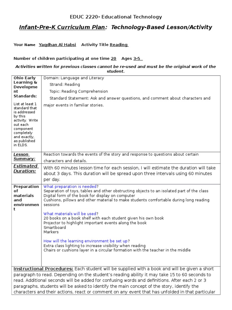 Edu 276 Technology Lesson Plan Template | PDF | Lesson Plan | Books
