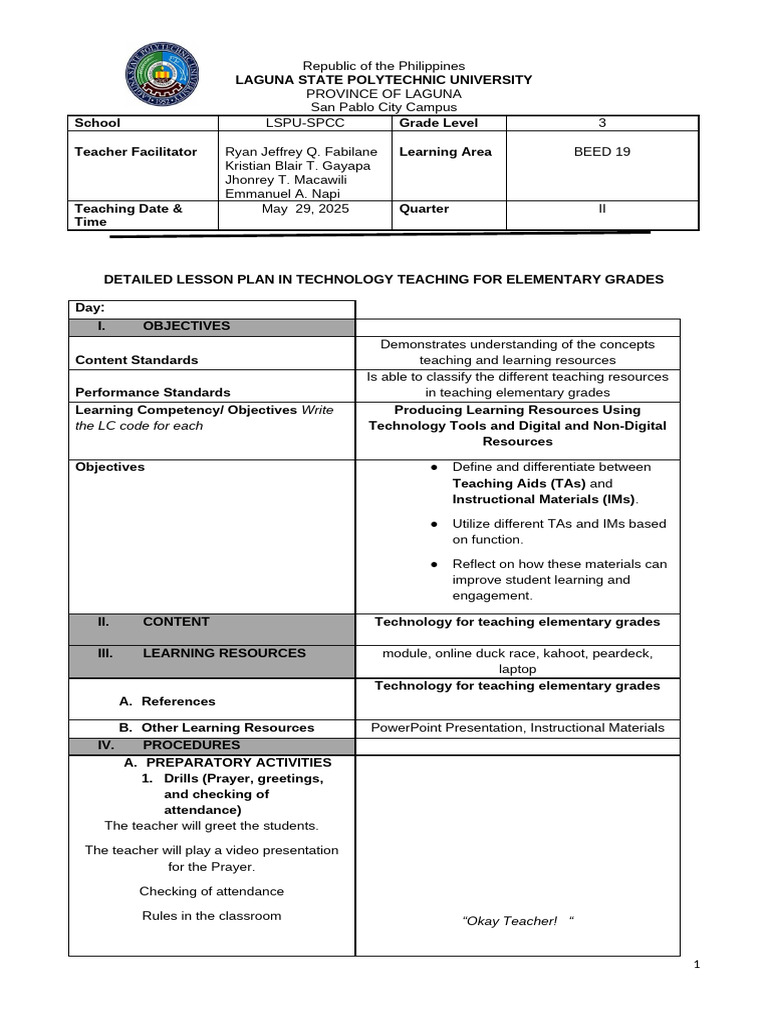 A detailed lesson plan in technology and pdf lesson plan teachers – Artofit