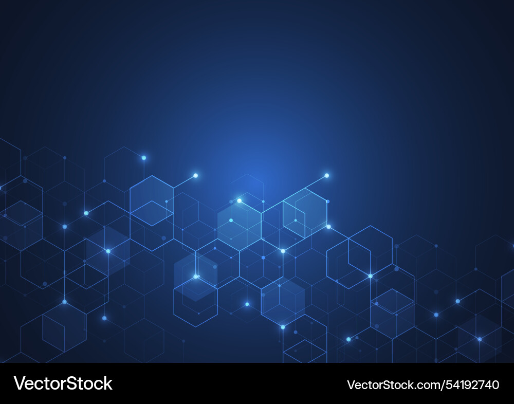 Abstract technology blue geometric hexagons pattern with glowing lights ...
